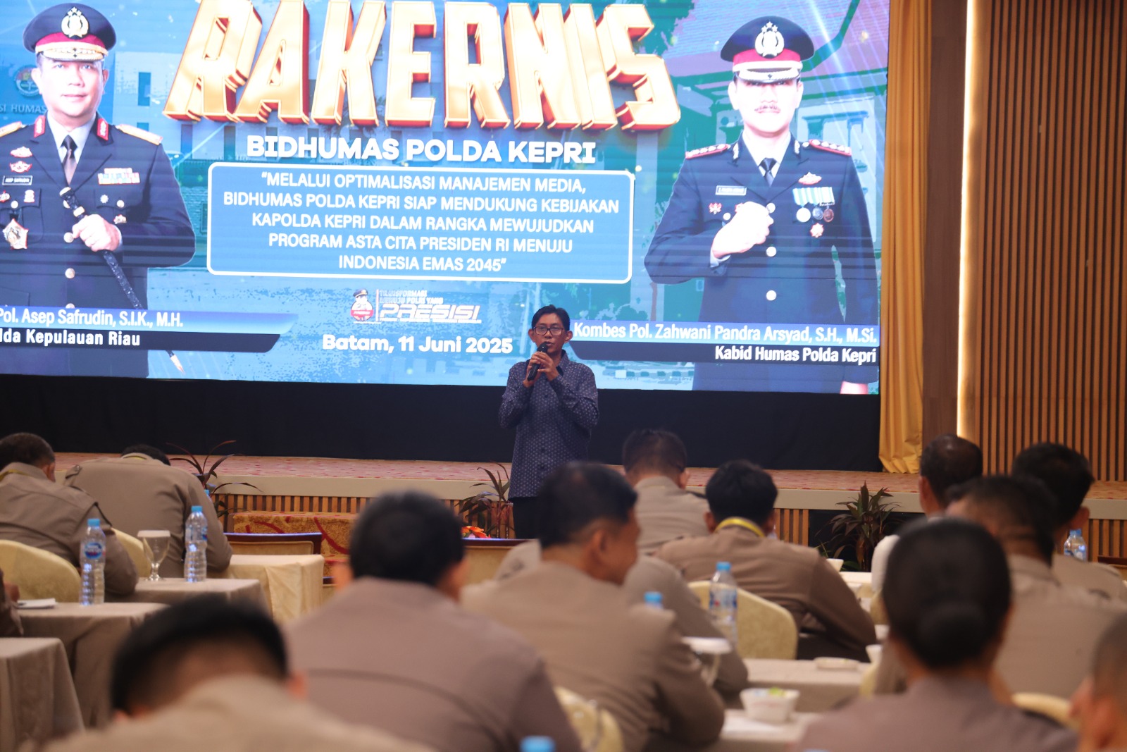 Polda Kepri menggelar Rapat Kerja Teknis (Rakernis) Humas Polda Kepri Tahun 2025 guna Perkuat Strategi Komunikasi Publik di Era Digital dengan mengusung tema "Melalui Optimalisasi Manajemen Media, Bidhumas Polda Kepri Siap Mendukung Kebijakan Kapolda Kepri Dalam Rangka Mewujudkan Program Asta Cita Presiden RI Menuju Indonesia Emas 2045" di Ballroom Hotel Nagoya Batam. Rabu (11/6/2025).